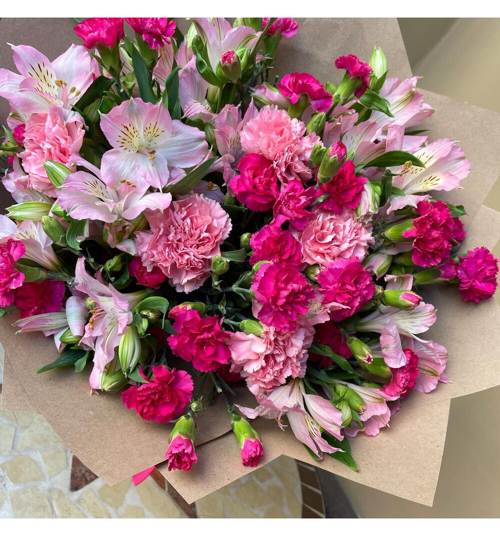 Букет "Магия лета" — это волшебное сочетание альстромерии и диантуса, которое принесет яркие краски и радостное настроение. Альстромерия своими яркими цветами добавит нотки свежести и радости, а диантус своим приятным ароматом и обильными цветами создаст атмосферу летнего волшебства. Шелковая атласная лента добавляет нежности и завершает букет великолепным акцентом. "Магия лета" — это прекрасный подарок для праздничных случаев, чтобы подарить вашим близким волшебный момент и радость.